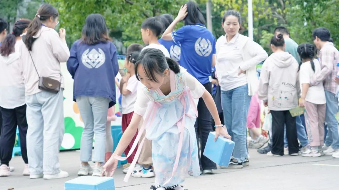 職工們陪著孩子們勇敢面對“萌雞下蛋”“踏石競渡”“童夢投壺”“筷運乒乓”等親子運動挑戰項目,共同協作并給予鼓勵,共同打造了一段歡樂的親子時光。趣味性的活動項目充分激發了孩子們積極挑戰、團結協作的體育精神,也提高了親子間的默契度。